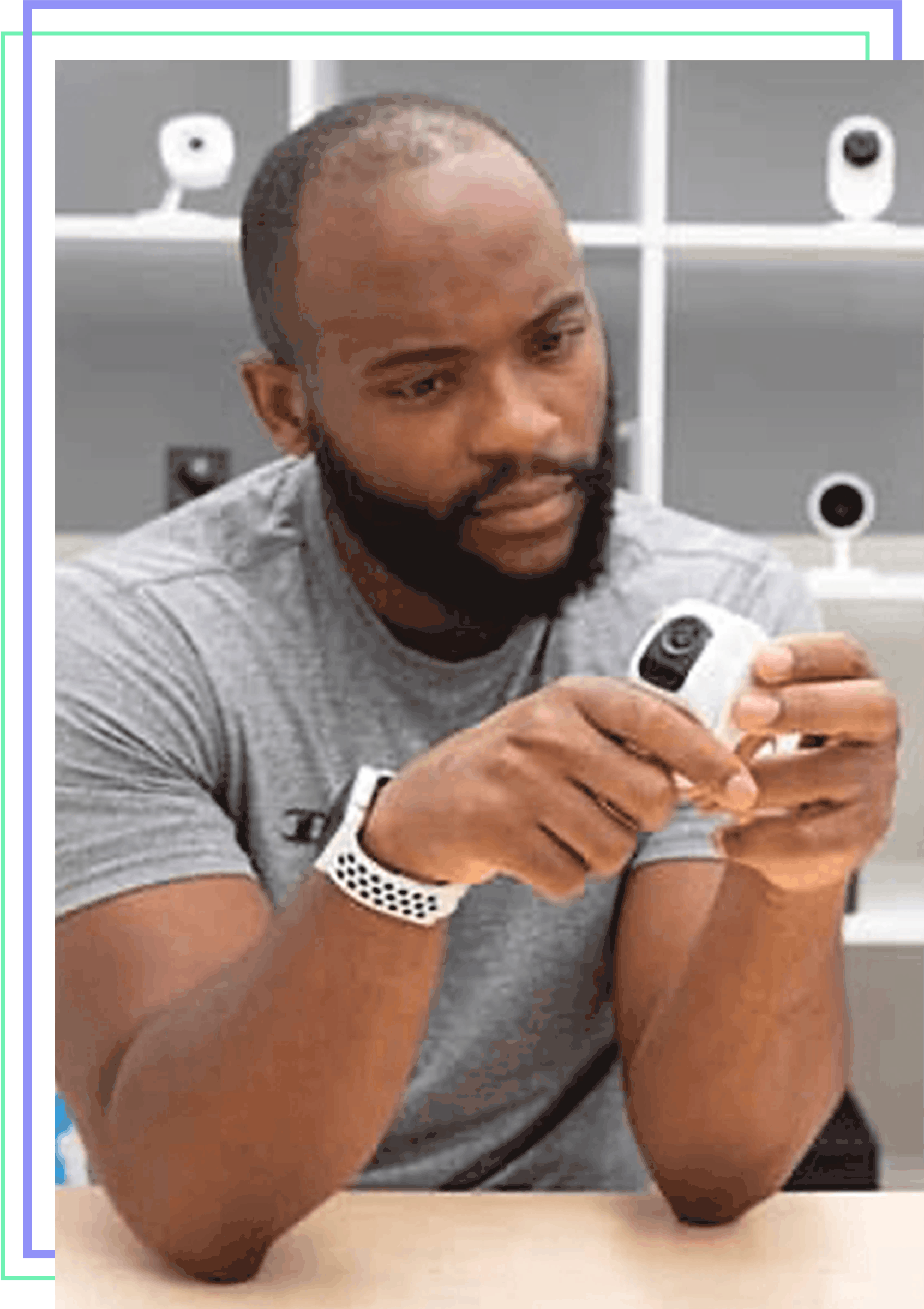 Corey testing out the SimpliSafe products