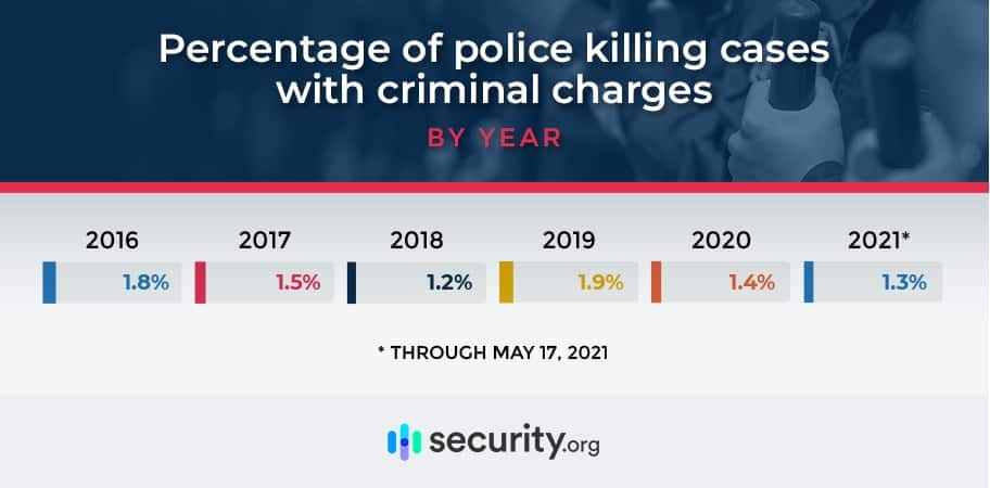 Criminal prosecution for police violence remains incredibly rare. In fact, at no point over the past five years has the rate of criminal charges being filed for police killings exceeded 2 percent of cases.