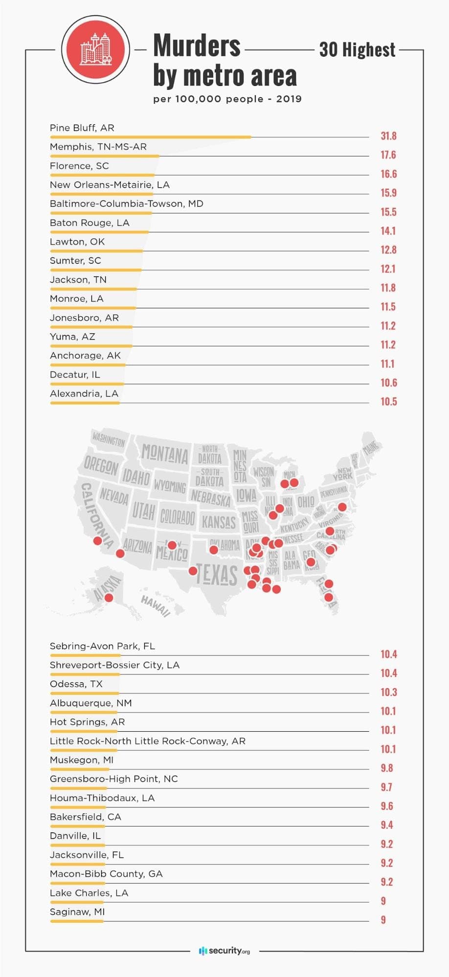 While murder may be less common on the national level than it was 20 years ago, several states and major cities have homicide rates that eclipse that of the entire U.S. definitively, and some areas have seen murder rates climb in recent years.1
