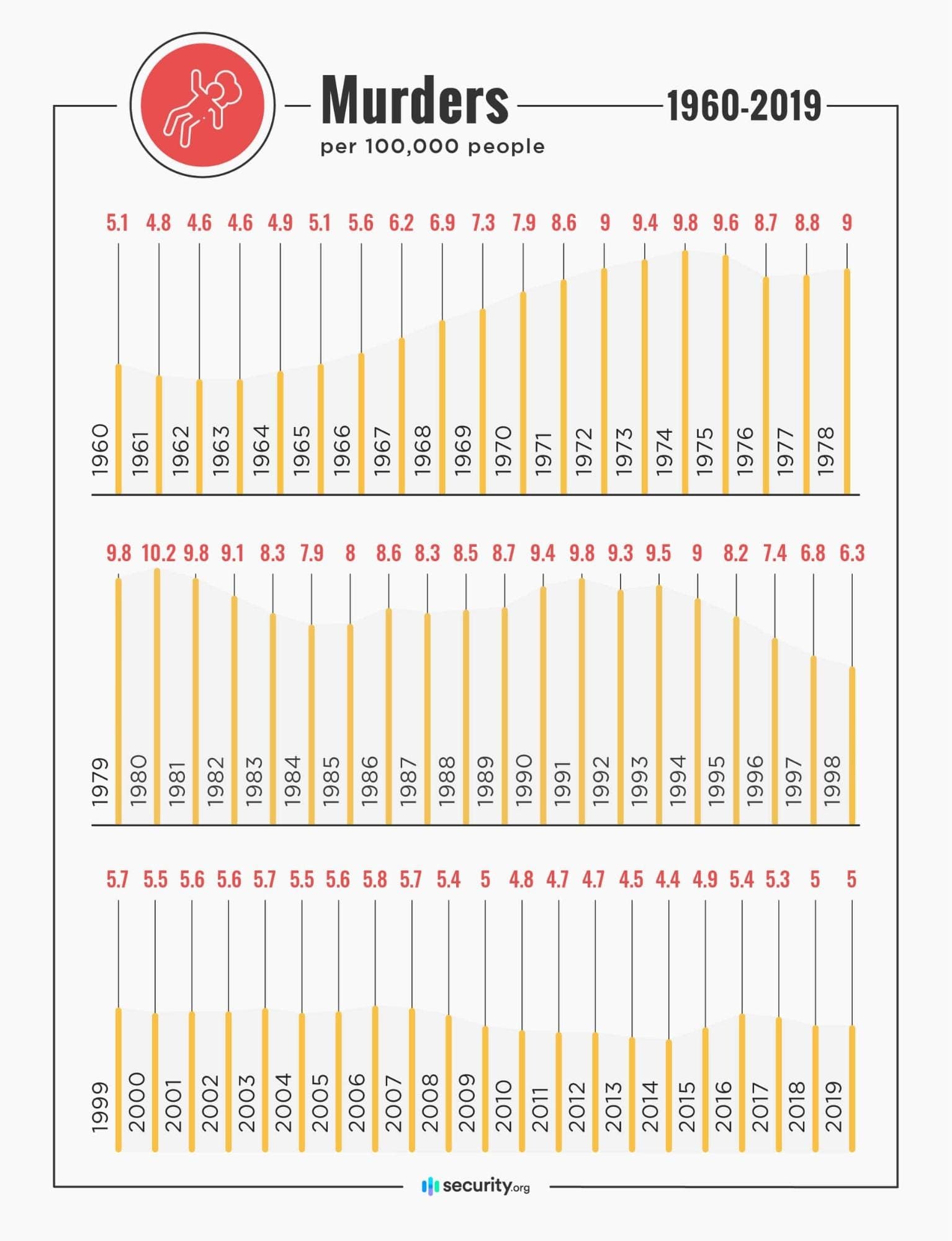 If you look at those figures, the current murder rate sits on the lower end of the spectrum. We can conclude that right now, we’re living in one of the safest times since 1960.